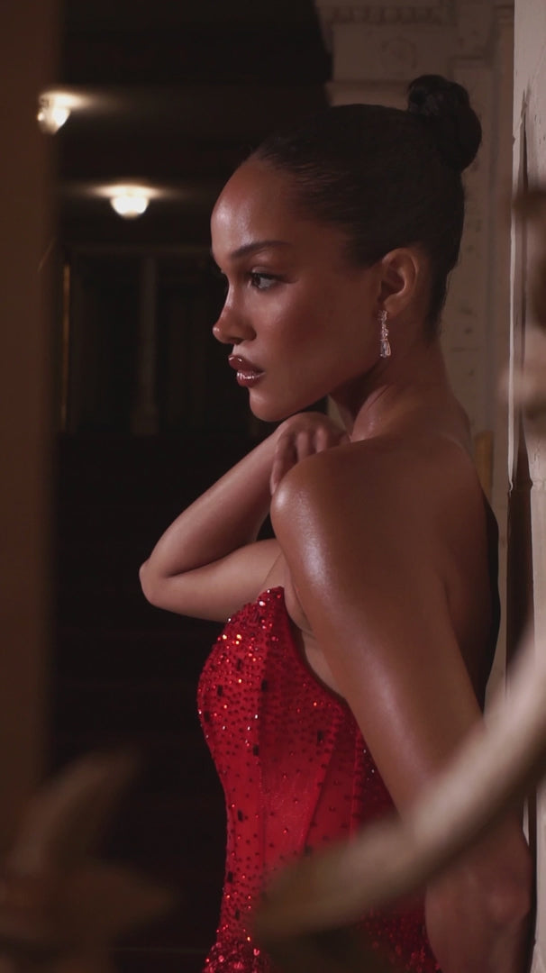 This stunning gown epitomizes refined elegance through meticulous design and luxurious craftsmanship. The straight neckline frames the shoulders with understated sophistication, while comprehensive sequin embellishment creates a luminous surface that captures light with every movement. A precisely engineered corset bodice with internal boning delivers exceptional waist definition and support, establishing a striking hourglass proportion. The fitted silhouette flows seamlessly to a floor-length hem, balancing structure with graceful movement. Perfect for discerning guests attending prom, black-tie galas, pageants, and formal occasions where impeccable presentation matters.